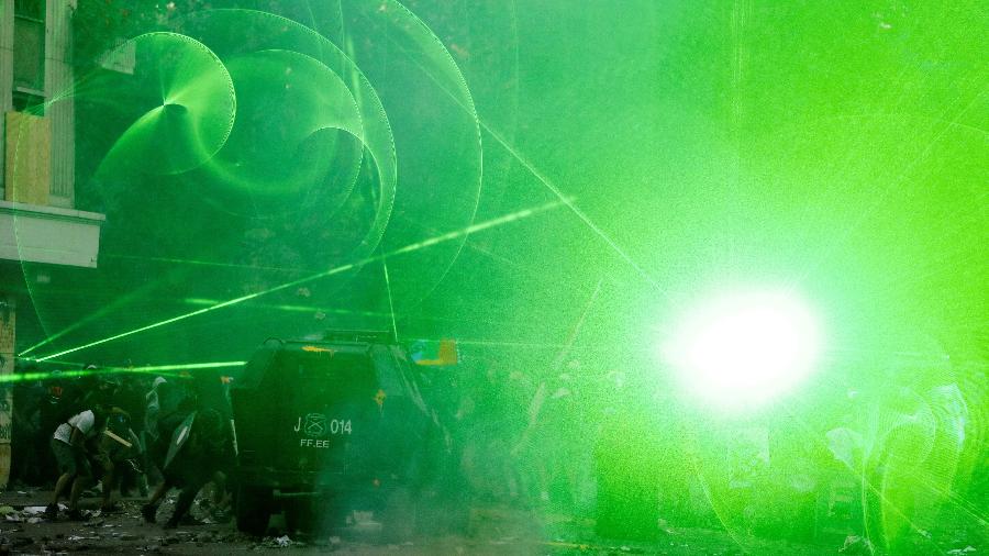 Manifestantes chilenos derrubam drone de vigilância com lasers